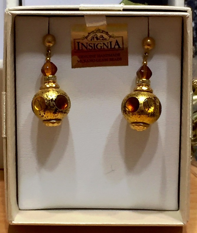 Gold Plate Murano Glass Amber Earrings shimmer in alternate Gold and Amber glass like a Moroccan Lantern.