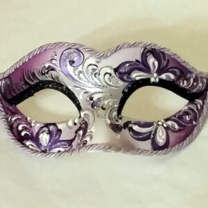 There are so many shades of lavender and violet on this piece, it is sure to tone in with your mask very well. We have other ladies purple and pink masks available. A fine braid of lilac tones with silver, trims the frame of the mask so that the colors are enhanced.